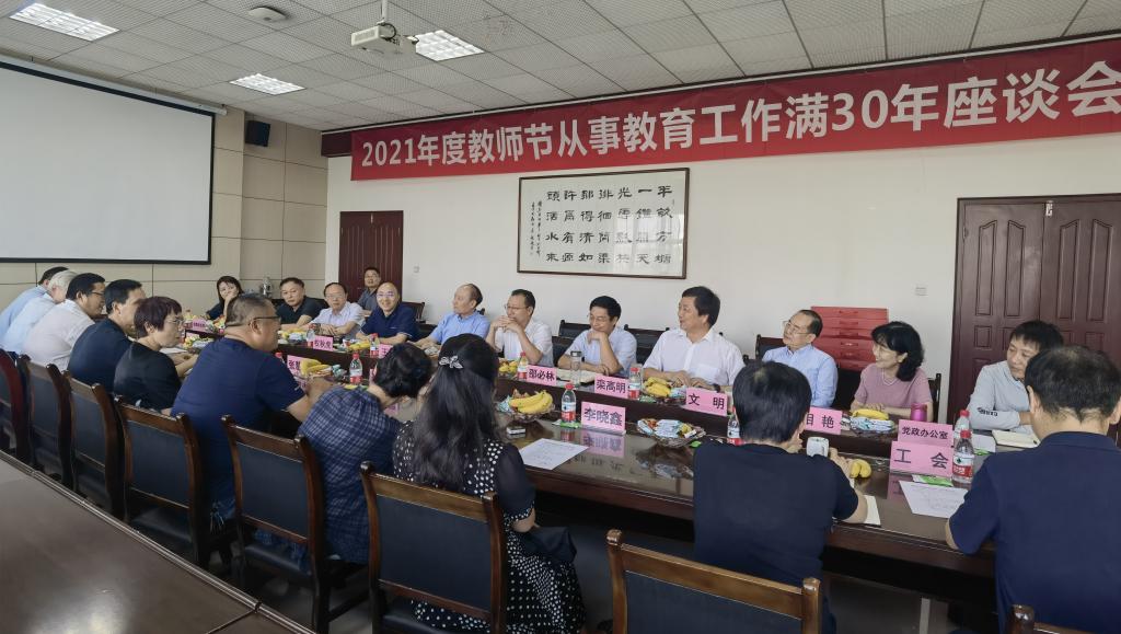 9月10日下午,best365官网召开从事教育工作满30年教职工座谈会。全体校领导、从事教育工作满30年教职工代表及相关职能部门负责人参加座谈。会议由党委副书记权秋虎主持。李晓鑫、雷电、张宏民、张慧军、温宏社、李建国等6位老师从教书育人、爱岗敬业、关爱学生等方面交流了从教三十年过程中的个人工作经历和感悟,畅谈深情厚重的校园情怀和对学校的美好祝愿。校长邵必林在致辞中对长期以来一直坚持在教学、科研、管理工作和服务领域,...