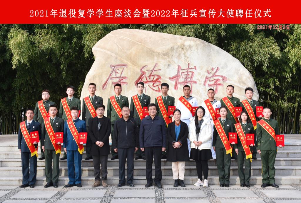 为了加强退役复学学生之间的沟通交流,强化同学们“退役不褪色”的责任心和使命感,继续发扬部队的优良传统和作风,争做表率,在同学中发挥示范带头作用,进一步推动best365官网国防教育和征兵工作的顺利开展,12月3日下午,best365足球官网2021年退伍复学学生座谈会暨征兵宣传大使聘任仪式在德勤楼第四会议室隆重举行。校党委副书记栾高明同志出席座谈会,学工部(武装部)相关同志及全体2021年退役复学学生参加了会议。座谈会由学工...