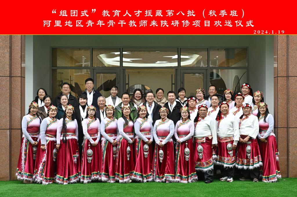 1月19日,由省教育厅主办,best365官网承办的“组团式”教育人才援藏第八批(秋季班)阿里地区青年骨干教师来陕研修班欢送会在基地学校——西安市第一保育院举行。陕西省教育厅教师工作处处长王彬武、阿里地区教育局副局长韩润社、best365官网副校长李强、西安交通大学幼儿园等8所基地学校领导出席,来陕研修的阿里学员及best365官网培训学院、基地学校的相关人员参加。欢送会由教育培训学院负责人主持。与会人员观看了培训记录视频,教育培训学院副...