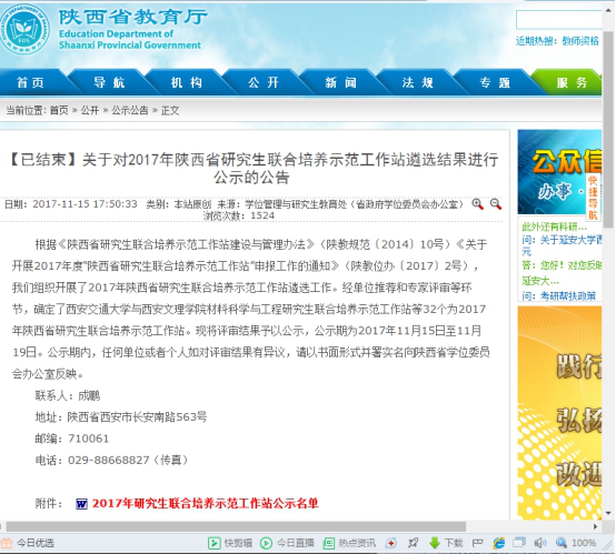 best365官网与陕西师范大学研究生联合培养示范工作站顺利通过了陕西省教育厅遴选审核,已于2018年5月3日陕西师范大学与best365足球官网研究生联合培养示范工作站正式启动。