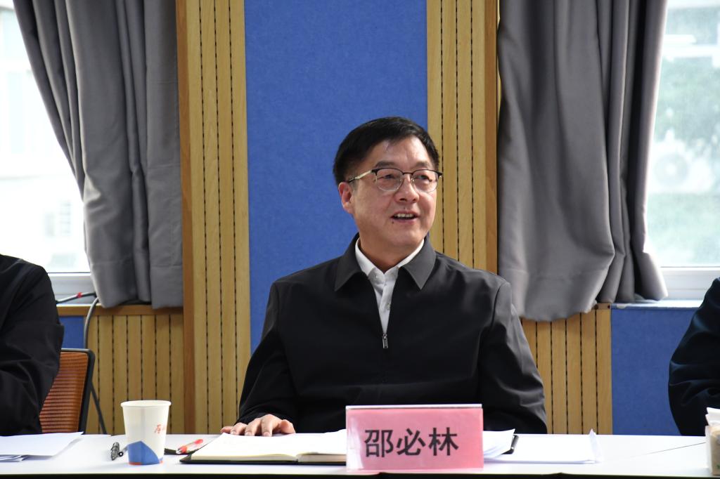 邵必林做了题为《守正创新强内涵 凝心聚力育新人 奋力开创新时代学校思政课建设新局面》的讲话。邵必林在讲话中指出,第一,要深学细悟习近平总书记重要讲话重要指示精神,持续增强办好思政课的责任感使命感。要深刻认识到办好思政课是学习贯彻党的创新理论的迫切需要,是加强伟大事业战略支撑的迫切需要,是维护国家安全稳定大局的迫切需要,是学校落实立德树人根本任务培养可靠人才的迫切需要。第二,要把党建和思政课建设有机结合起来,推动陕西省重点马克思主义学院培育单位高质量发展。一方面,要认识到党建是思政课教学“魂之所系”。另一方面,思政课教学是党建的“重要桥梁”。第三,要找准思政课建设内涵式发展的着力点,推动思政课高质量发展。一是要坚持守正创新的科学原则和方法,二是要提升学理品质增强思政课建设内源动力,三是要转化“三大文化”资源夯实思政课建设力量根基。第四,要以专业发展为导向加强教师队伍能力建设,为思政课高质量建设提供根本保障。思政课教师要按照习近平总书记提出的“八个相统一”的要求,突出理论的“系统性研究”,把道理讲深;突出课堂的“系统性贯通”,把道理讲透;突出实践的“系统结合”,把道理讲活。真正让思政课更有针对性和实效性,更有亲和力和感染力,让人口服心服。第五,要汇聚工作合力,努力形成全校上下齐抓共管思政课建设的良好氛围。要全面梳理马克思主义学院及思政课建设中存在的问题和不足,以陕西省重点马克思主义学院培育单位建设为抓手,务求工作实效,坚持把学习贯彻中、省有关通知精神与高质量实施“十四五”、前瞻谋划“十五五”规划结合起来,科学谋划部署马克思主义学院综合改革举措,推动马克思主义学院各项事业再上新台阶。