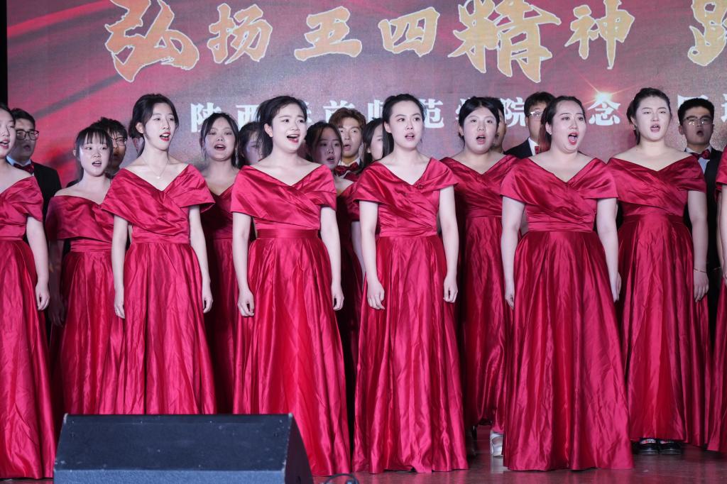 整场晚会由“觉醒年代·致青春”、“五四韶华·勇担当”、“讴歌历史·新使命”三个篇章构成,主题鲜明,形式丰富。节目编排将红色革命文化与美育教学成果展演相结合。“嘉兴的游船推开清波,瑞金的山岗高耸巍峨,遵义的星火传遍山河,延安的土窑见证不朽......”一曲悠扬的混声合唱“百年守望”拉开了演出的帷幕,青年朋友们追寻着信仰的光芒,忆往昔、壮志酬,立当下、展未来,同唱青春之歌;群舞“秋风秋雨”、“致青春”、“红船”“苏区妈妈”“共和国之恋”意蕴丰沛,引领现场观众穿越时空,追随红色印记。歌曲“东方红”“灯火里的中国”、“向往”“我怎么去爱你”、“我是一条小河”,唱出了陕师院青年对伟大领袖的深情爱戴,对祖国的美好祝福,对未来的欣然向往,也唱出了海外游子血脉里割舍不了的情感羁绊和平凡人对理想的执着追求。力量感十足的独舞“江格尔·英雄赞”和一群超燃乐队青年带来的歌曲串烧,倾情诠释了青春该有的模样。活动现场掌声欢呼声此起彼伏,气氛热烈。整场晚会在激情澎湃的歌舞节目《上春山》中圆满落幕。