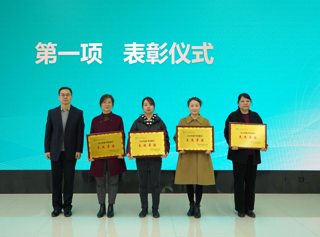 会议隆重表彰了“2022年度学生工作先进单位”、“2023年度学风建设先进单位”、“2023年就业工作目标达成先进单位”、“2023年访企拓岗促就业专项行动先进单位”“2023年校园招聘活动先进单位”以及2023年在省级、校级荣获各类奖项的辅导员代表。