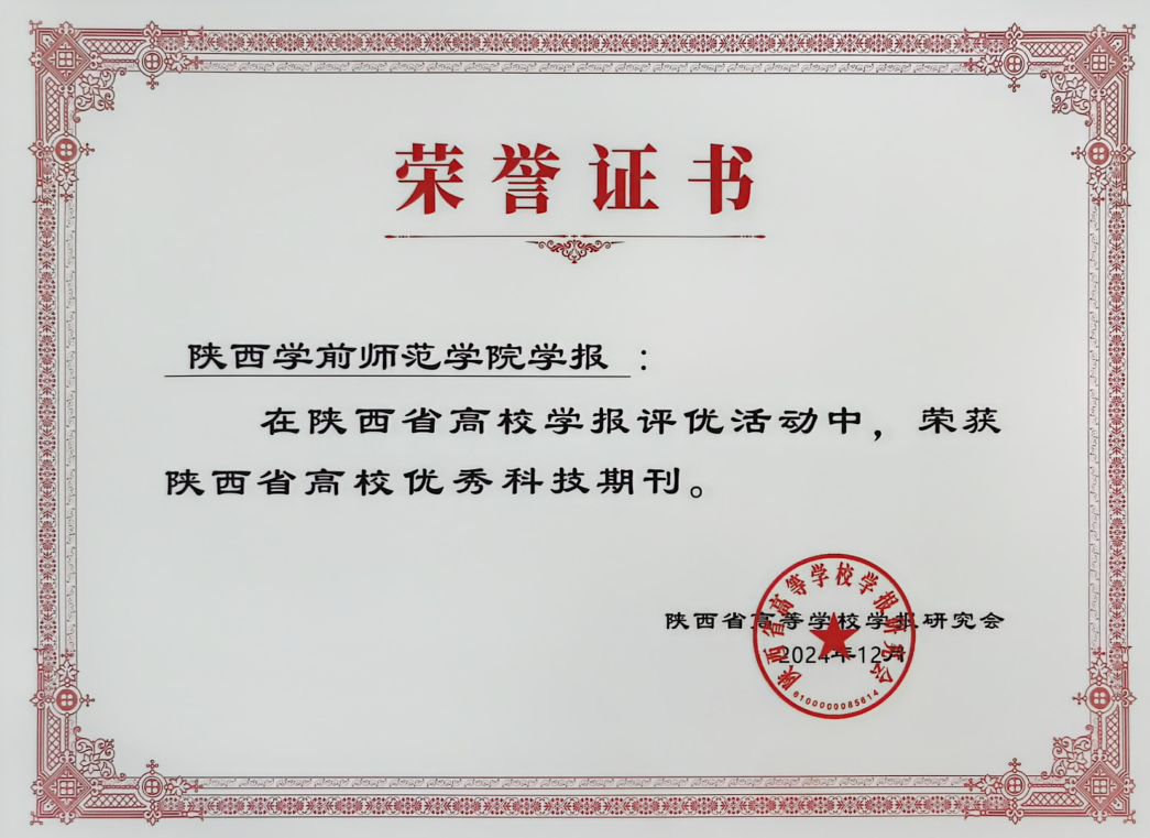 本次获奖是《best365足球官网学报》继2023年喜获“陕西高校精品社科期刊”荣誉称号后取得的又一殊荣,标志着《best365足球官网学报》在拓展提升期刊科技品质方面迈上一个新台阶。