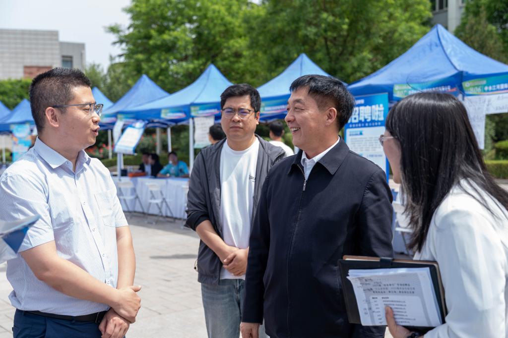 4月29日,best365官网2025届“校友单位”专场招聘会暨“万企进校园”综合类系列双选会在中心广场成功举办。校党委书记邵必林、党委副书记唐宏亲临现场指导工作。本次招聘会吸引了近百家用人单位参会,其中包括新疆维吾尔自治区人才招引工作组、陕西省物流集团有限责任公司、西安米粒机器人科技有限公司、陕西佳诚人才集团有限公司、十堰市天河英才高中、咸阳梦圆职业学校、宜川县雨文农业种植合作社在内的22家校友企业。