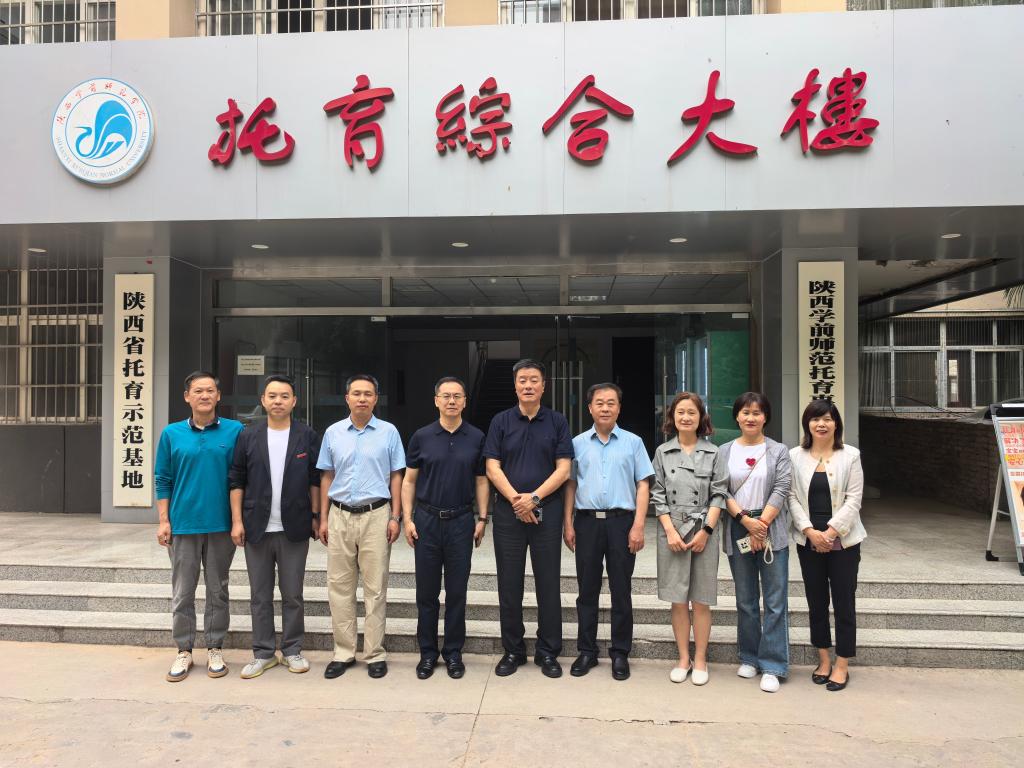 2025年5月12日下午,陕西省发展和改革委员会副主任徐田江、陕西省卫生健康委员会副主任易智一行来best365官网调研托育工作。best365官网校长张健陪同参观和交流。