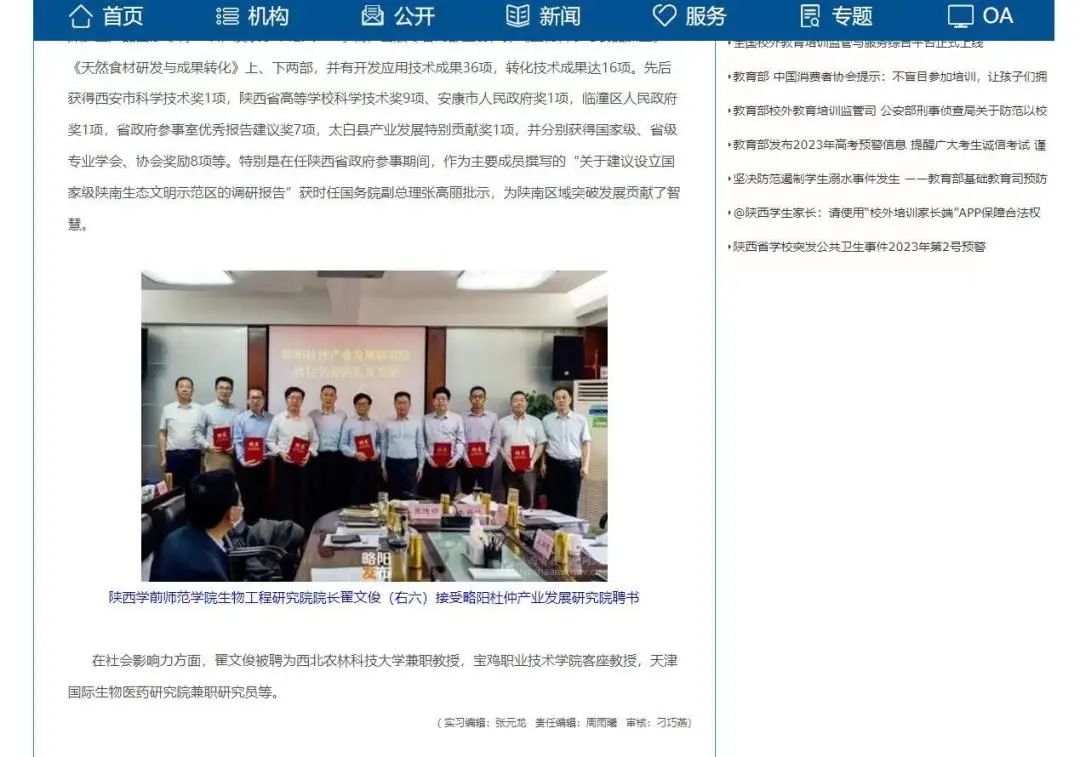 民进会员翟文俊研究员共申报深加工产品国家专利84项,发表学术论文100余篇,出版专著两部三册,即《生物科学与食品加工》《天然食材研发与成果转化》上、下两部,并有开发应用技术成果36项,转化技术成果达16项。先后获得西安市科学技术奖1项,陕西省高等学校科学技术奖9项、安康市人民政府奖1项,临潼区人民政府奖1项,省政府参事室优秀报告建议奖7项,太白县产业发展特别贡献奖1项,并分别获得国家级、省级专业学会、协会奖励8项等。