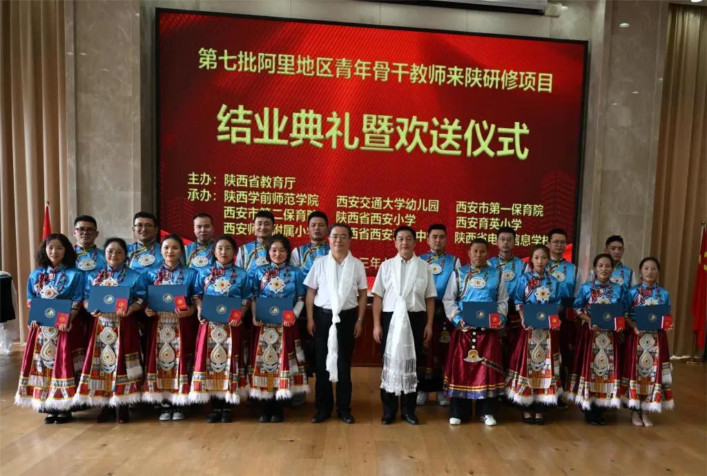 1.用心用情用力做好“组团式”教育人才援藏工作。从2016年启动阿里青年骨干教师来陕研修项目以来,我们已经成功举办了8批阿里地区青年骨干教师来陕研修班,为西藏阿里地区培养了129名优秀骨干教师和管理者。组织了3批次赴阿里地区名师送教团赴阿里地区送教帮扶,组建了“陕-阿教师学习共同体”15个,组织对阿里地区开展了2082人次教师开展了线上培训等工作。承办了3期150名阿里地区青少年来陕研学交流活动。