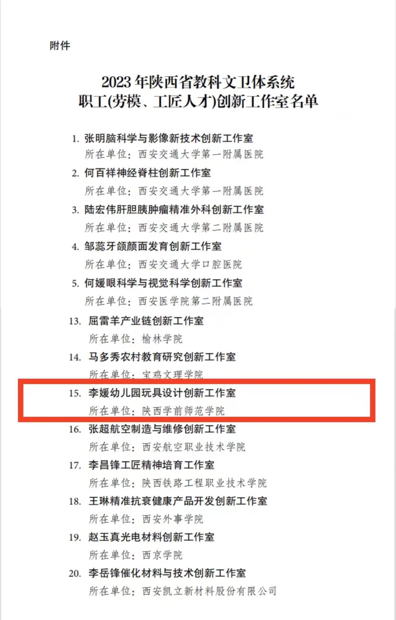 近日,陕西省教科文卫体工会委员会发布关于命名2023年陕西省教科文卫体系统职工(劳模、工匠人才)创新工作室的决定,由best365官网附属幼儿园李媛园长主持申报的李媛幼儿园玩具设计创新工作室获批通过。 李媛幼儿园玩教具工作室致力于研究3-6岁儿童自制玩教具制作与设计研发工作,多年来由李媛园长带领团队主持并设计的多项自制玩教具作品获国家专利2项,《薯桶乐》《玩转磁粉》《翻转魔方》等多件自制玩教具在全国第二届、第三届、第四届自制玩教具评选中获一等奖。总结出的7+3+N自制玩教具研发模式与创新实践获陕西省第十一届基础教育成果奖一等奖。主编出版《幼儿园自制玩教具的设计与应用》一书。 李媛幼儿园玩具设计创新工作室负责人李媛表示,未来创新工作室将珍惜荣誉,再接再厉,充分发挥示范引领、协同发展、继承传统、集智创新的功能,带动周边幼教同仁为幼儿玩教具的研发工作高质量开展,促进教师技能素质不断提升,为学前教育事业的发展做出更大的贡献! (供稿:附属幼儿园 校工会 撰稿:白芯蕊 责任审核:李媛 曾凯)