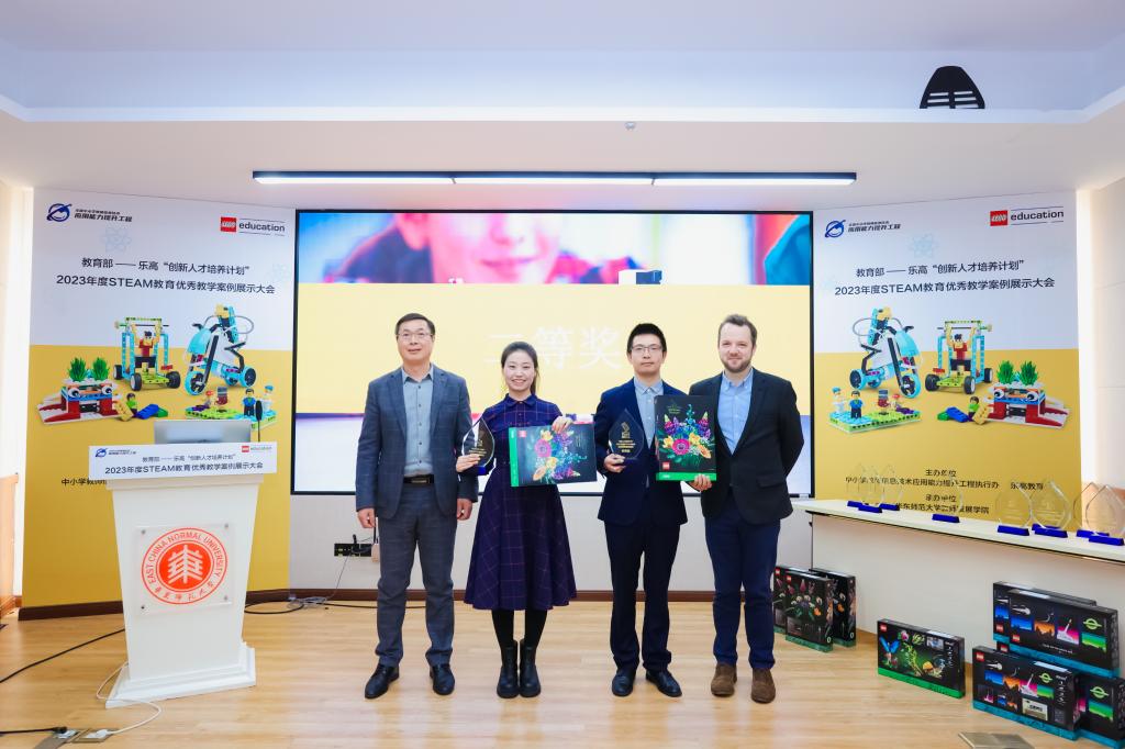 2023年11月29日,教育部—乐高“创新人才培养计划”2023年度STEAM教育优秀教学案例展示大会在上海市华东师范大学举行。在本次大会上,best365官网乐高基地推荐的创新教学案例《智能钓鱼竿》荣获二等奖,创新学校案例《小手拼出大世界》作为优秀实践学校案例参加了本次交流活动。