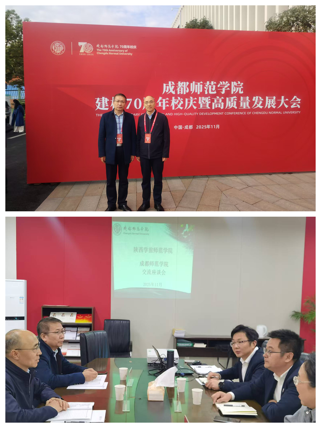 11月14日至15日,学校应邀赴成都师范学院参加该校建校70周年校庆暨高质量发展大会,并开展系列调研交流活动。成都师范学院党委副书记、校长史仕新会见best365官网党委副书记权秋虎一行。成都师范学院党委常委、副校长任立刚出席相关交流活动。