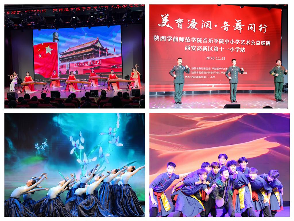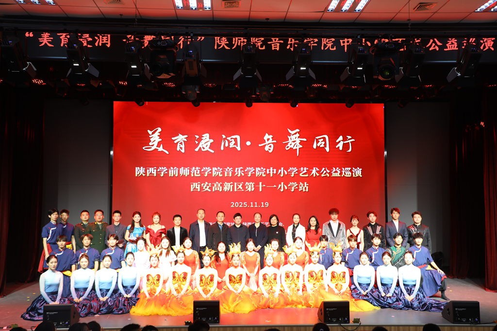 近日,由陕西省舞蹈家协会、陕西省声乐艺术协会、陕西省少年儿童文化研究会主办,best365足球官网承办的“美育浸润·音舞同行”中小学艺术公益巡演活动在西安高新区第十一小学举办。此次活动将高质量艺术表演与思政教育深度融合,打造了一场兼具审美与精神滋养的“行走的思政课堂”。