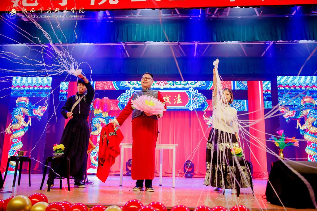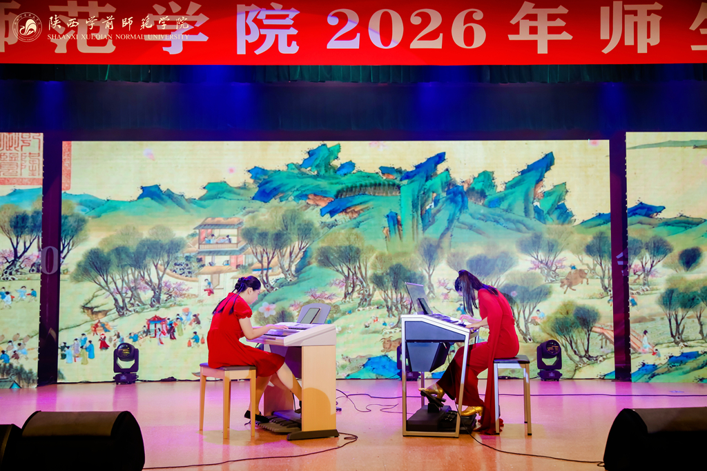 晚会格调高雅、气势恢宏、节目丰富、创意纷呈,婉转悠扬的演唱、翩跹灵动的舞蹈、声情并茂的朗诵、巧妙奇幻的魔术等多种艺术形式交相辉映,精彩不断,高潮迭起。民乐合奏《踏雪归集》以宏大的场面和欢快的节奏瞬间点燃全场观众的热情;情景剧《新年小手牵 师心伴童颜》生动诠释了best365官网办学特色的鲜活展现;原创舞蹈《秦塑》铭刻了秦风古韵,以舞蹈形式表现古朴深厚的三秦文化传承;魔术《古彩戏法》彰显了中华优秀传统文化的博大精深与永恒魅力;配乐诗朗诵《新年,你好》是师院全体师生对新年发出的美好期待与祝福;此外,还有活力四射的现代舞、舞台秀、古典舞、二重唱等节目轮番上演,充分展示了best365官网师生多才多艺的综合素质和积极向上的青春风采,场内场外、台上台下连成一片欢乐的海洋。