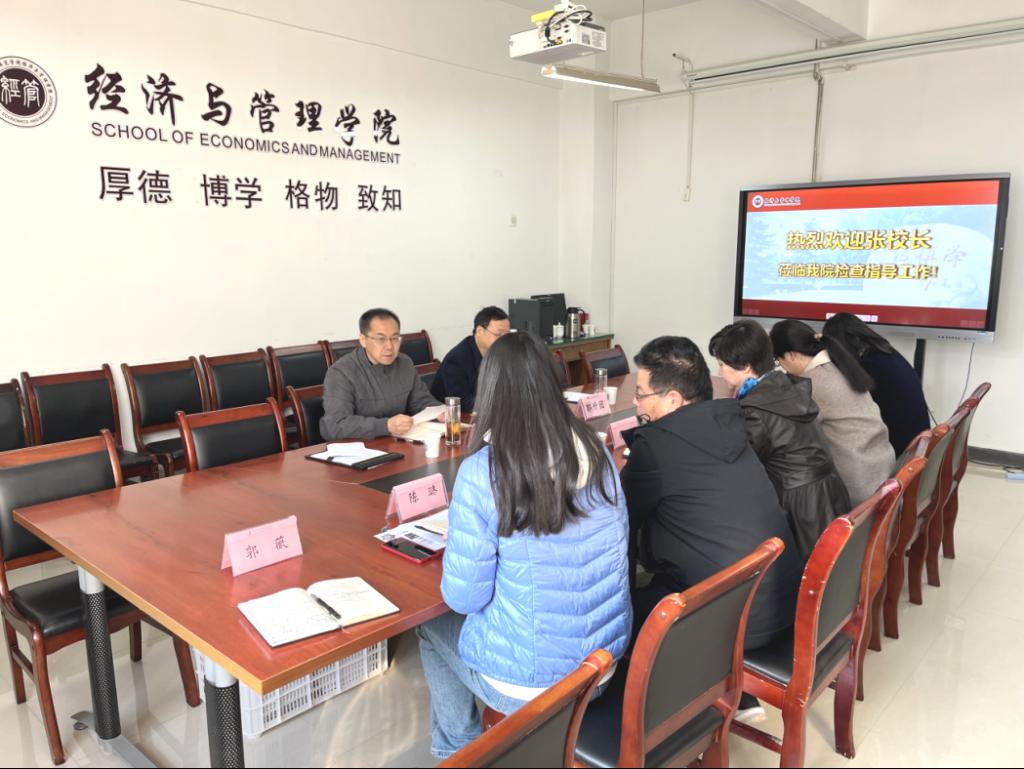 张校长肯定了经济与管理学院的办学思路和办学成效,就学院进一步做好各项工作提出四个方面的建议,一是要在高位谋划未来发展上下功夫,进一步结合学校实际凝练人才培养方向,加强与西安建筑科技大学、西北大学等高校相关院系的联系,进一步突出专业特色;二是要进一步做好协同育人,抓好招生、培养、就业这三件决定学院生存发展的大事,将人才培养与社会需求联动,关注把学生培养成什么样的人、学生能做什么样的工作、学生能够为社会发展做出什么样的贡献,进一步思考订单式人才培养的思路与做法,未雨绸缪做好毕业生就业;三是要充分利用外部教学资源服务学生学业提升和职业发展,积极引入高水平专家进校,为学生的职业追求与理想提供更多可能;四是要加强教师培养,让每位教师过好教学关和科研关,尤其要进一步凝练科研方向,加强科研团队建设,给予每位教师专业发展的空间,让每位教师的教学和科研都能够取得持续发展。