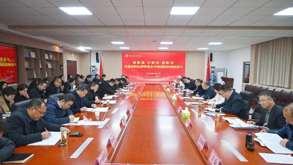 3月1日上午,学校召开会议传达学习2026年全国、全省教育工作会议精神,以及全省深化开展“三个年”活动,全面提升“三服务”质效动员部署会议精神,审阅学校《“十五五”发展规划(草稿)》,听取深化教育教学改革和创新科研工作体制机制的汇报,总结2025年工作、安排部署2026年工作。校党委书记、校长张健主持会议并讲话。