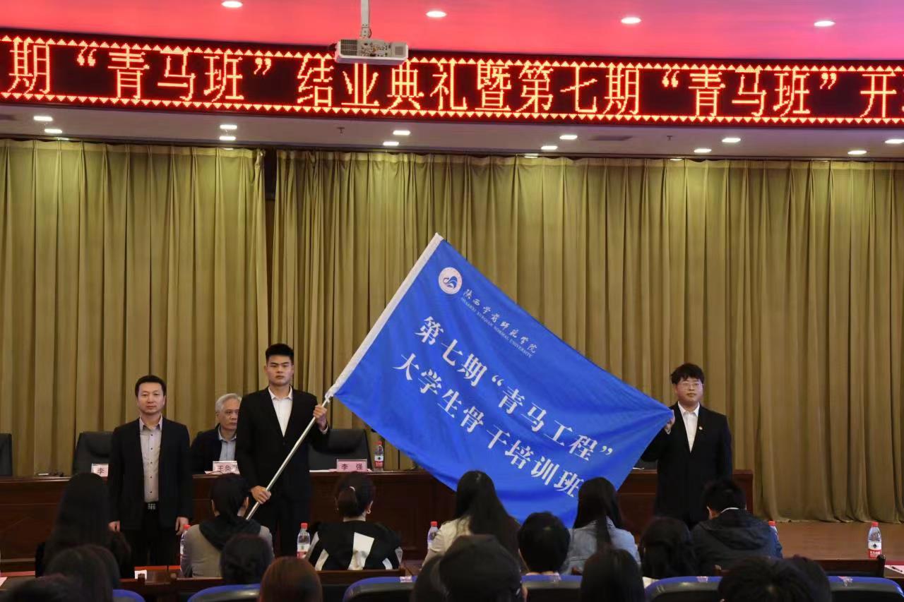 随后,副校长李强同志向第七期“青马”培训班授班旗,并向参加此次培训班的300余名学员提出四点要求:肩负使命学,做有理想的师院青年;带着问题学,实现知行合一,做敢担当的师院青年;磨炼意志学,铸就坚韧品格,做能吃苦的师院青年;勤奋努力学,发扬进取精神,做肯奋斗的师院青年。希望同学们珍惜此次青马班的学习机会,牢记总书记对广大青年的寄语,努力做新时代的奋斗者、开拓者、奉献者,在中国式现代化的伟大征程中书写青春华章。