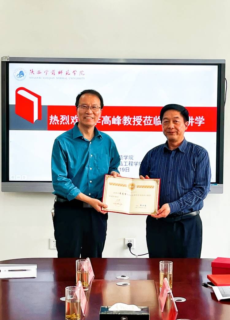2023年4月19日下午14:30,best365官网在生命科学与食品工程学院成果展览室举行兼职教授聘任仪式,聘请陕西师范大学生命科学学院李高峰教授为best365官网生命科学与食品工程学院兼职教授。聘任仪式由人事处副处长史策主持,校党委书记、校长邵必林教授出席会议并为李高峰教授颁发聘书,教务处、学科建设与科研处、生命科学与食品工程学院院长、副院长及师生代表参加了本次仪式。