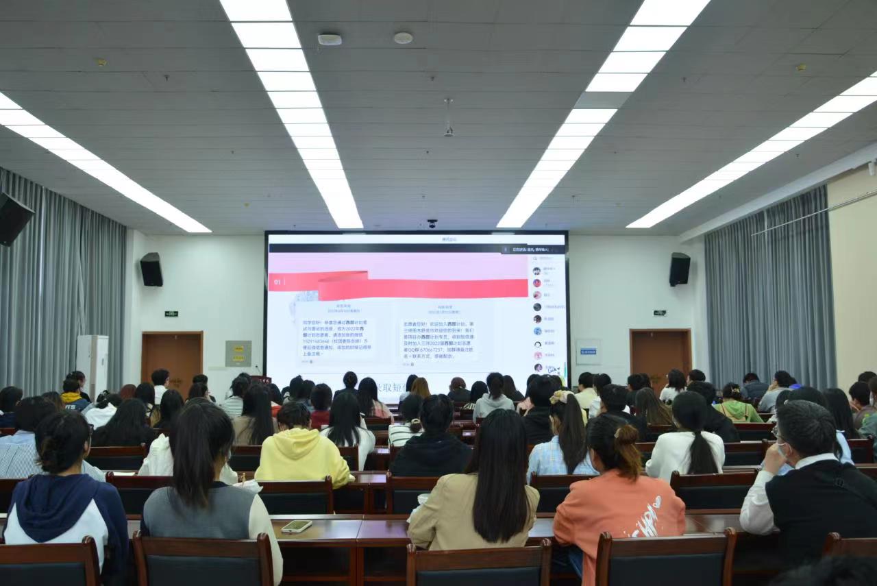 据悉,作为参与西部计划项目的高校,best365官网近三年共选派了36名志愿者分赴新疆及新疆生产建设兵团、陕西榆林、延安、渭南、汉中、宝鸡、咸阳、安康等地开展志愿服务,受到了当地政府和省项目办的一致认可和充分肯定,用实际行动践行了“品德优、基础实、能力强、素质高”的学校人才培养定位。此次项目启动会暨经验分享会,不仅有效帮助了2023届毕业生较为全面地了解了西部计划志愿服务项目,还为学校后续工作奠定了基础。2023年,学校项目办将认真总结工作经验,从抓好招募培训、派遣管理、总结宣传、加强组织情感培育等多个方面积极推动大学生志愿服务西部计划工作,积极遴选政治思想过硬、素质全面、身体健康、甘于奉献的优秀志愿者到西部去、到基层去、到祖国需要的地方建功立业。