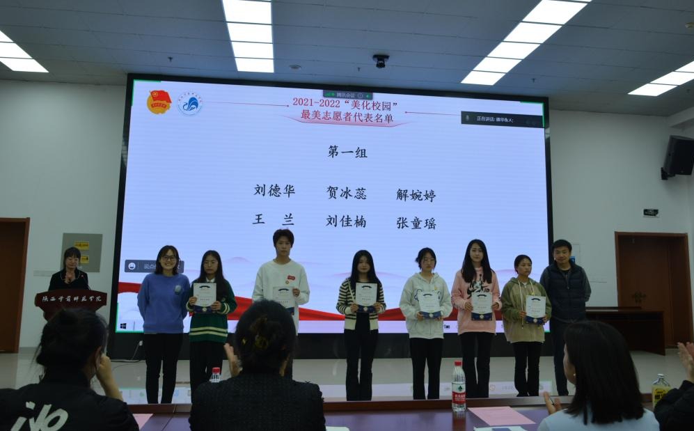 分享会在志愿者之歌《一起走》中拉开帷幕。校团委书记李蓉同志作大学生志愿服务西部计划项目介绍,并领学了习近平总书记在“把雷锋精神代代传承下去——纪念毛泽东等老一辈革命家为雷锋同志题词六十周年”座谈会上的重要指示精神。会议中还分别对2022年度“美化校园”和“疫情防控”最美志愿者进行了专项表彰,鼓励、引导更多青年学生积极参与到志愿服务和公益事业当中。