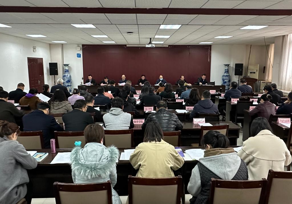党委书记、校长邵必林作了动员讲话,他从高度重视,确保全员思想认识到位;增强信心,确保全员精神状态到位;统筹安排,确保各项工作落实到位;精心准备,确保工作成效显示到位;严格要求,确保工作职责履行到位五个方面对迎评工作提出总体要求。