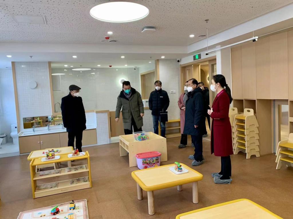 线下与会人员会前现场参观了托育综合大楼托育中心,听取了项目建设成效和功能定位汇报。