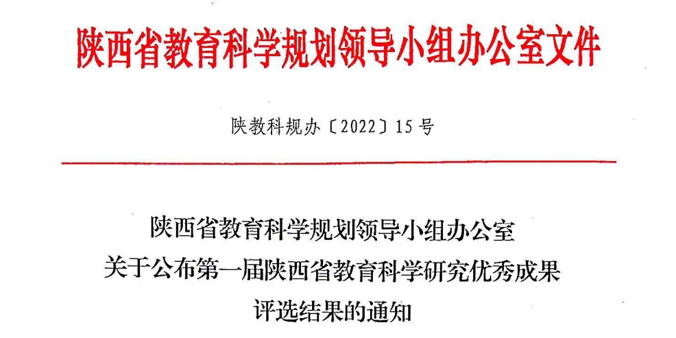 近日,陕西省教育科学规划领导小组办公室公布了第一届陕西省教育科学优秀成果评选活动的结果,此次评奖活动共有105项成果获奖,其中一等奖16项,二等奖36项,三等奖53项。best365官网获得一等奖1项,三等奖4项。