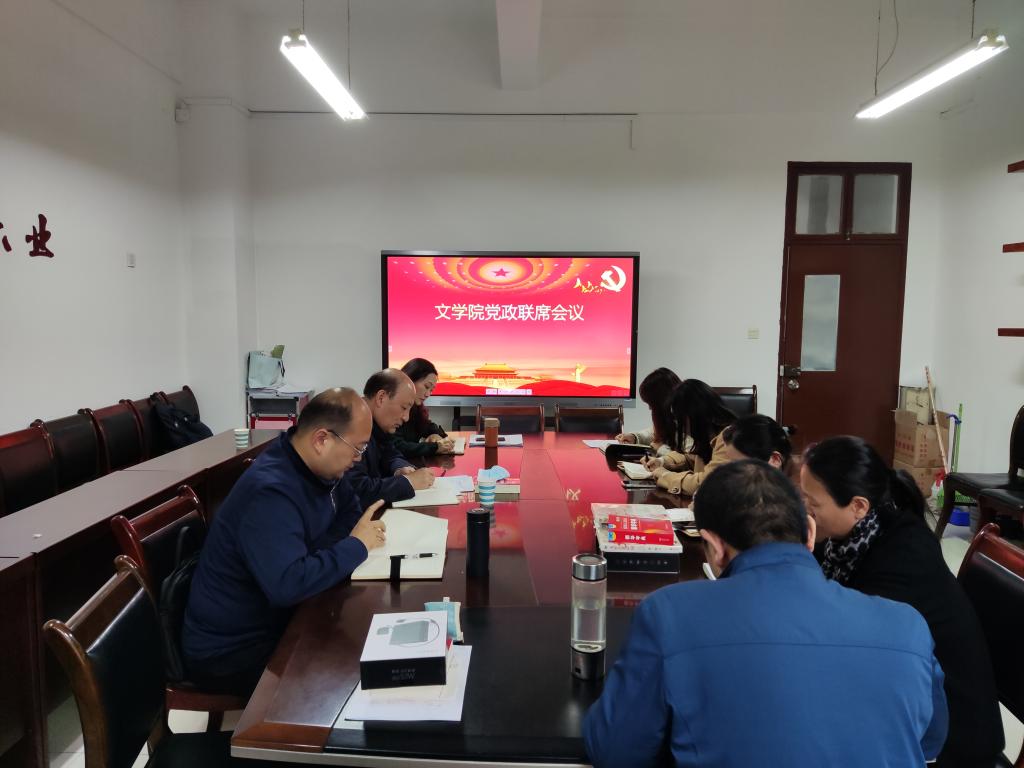 会上,院党委书记杨阳通报了文学院巡视整改相关工作的落实与推进情况。党政班子围绕年度进人计划、系部设置调整、就业工作计划、学生违纪处理以及“享阅”读书沙龙实施计划等议题逐一进行了研究讨论和表决。