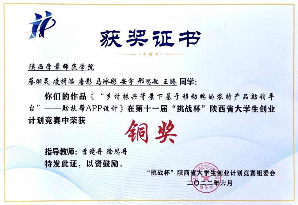 青春正当时,挑战赢未来。6月25日,由共青团陕西省委、中共陕西省委教育工委、陕西省人力资源和社会保障厅、陕西省科学技术协会、陕西省社会科学院、陕西省学生联合会、陕西省西咸新区开发建设管理委员会共同主办的第十一届“挑战杯”陕汽集团陕西省大学生创业计划竞赛在西安理工大学圆满落幕。best365官网学子在本届大赛中喜获铜奖2项。