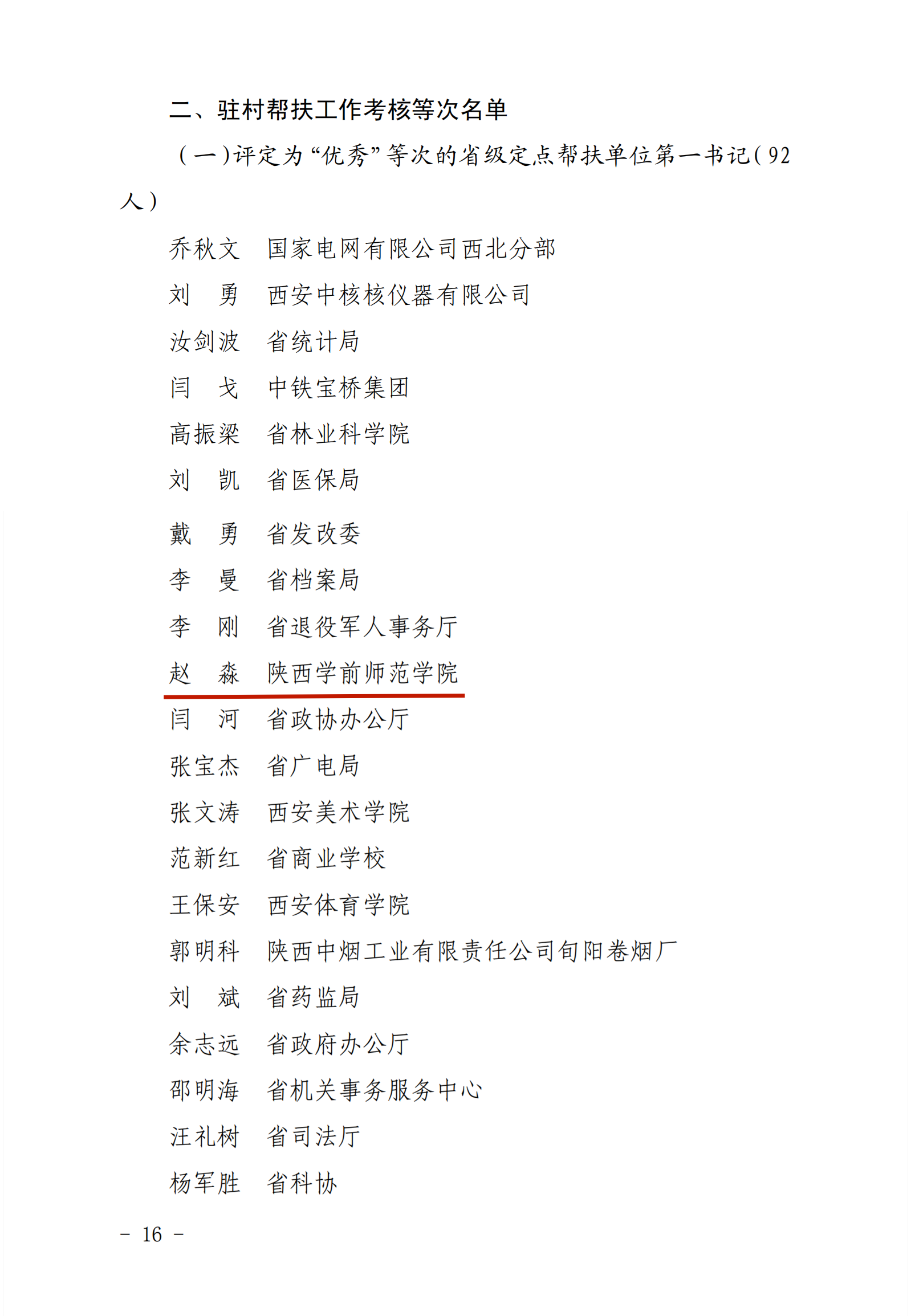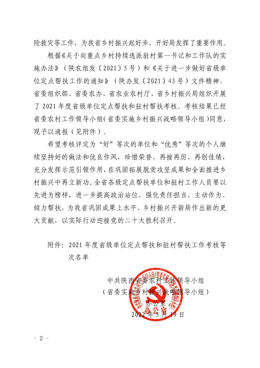 近日,中共陕西省委农村工作领导小组(省委实施乡村振兴战略领导小组)办公室印发《关于2021年度省级单位定点帮扶和驻村帮扶工作考核结果的通报》,公布由省委组织部、省委农办、省农业农村厅、省乡村振兴局组织开展的2021年度省级单位定点帮扶和驻村帮扶考核结果,best365官网2021年驻村帮扶干部、留坝县江口镇元树村第一书记、驻村工作队队长赵淼同志荣获驻村帮扶单位第一书记考核优秀等次,这也是留坝县省级帮扶团七个单位中唯一的第一书记优秀等次。