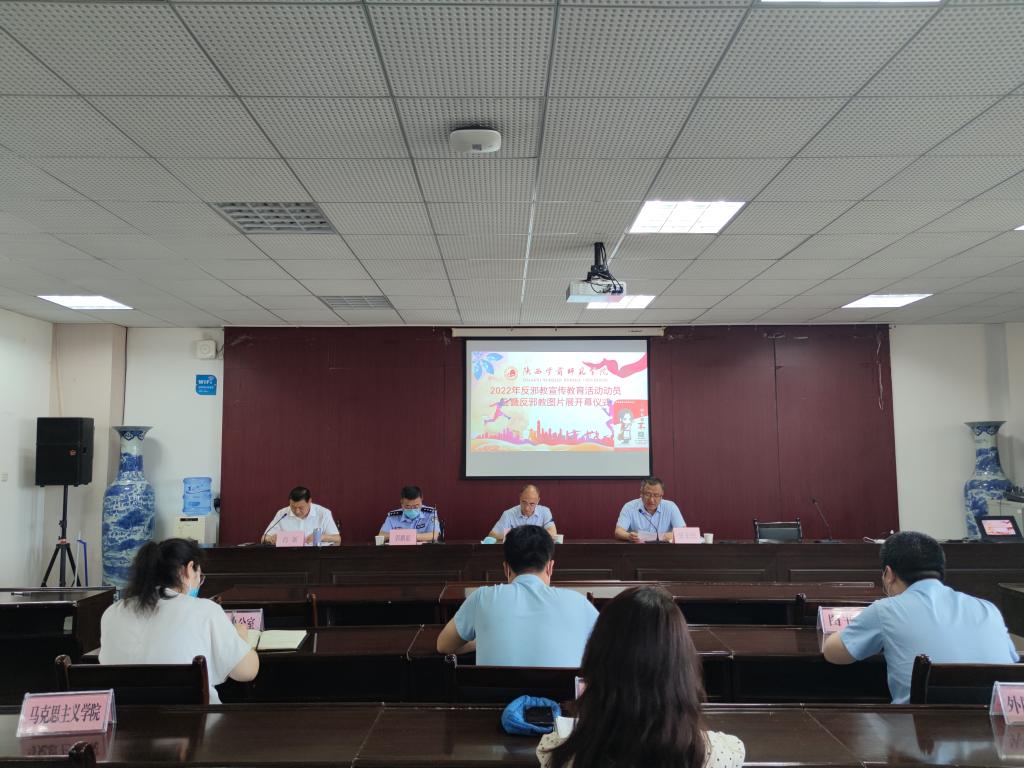 为落实省委教育工委、省公安厅有关安排部署,营造浓厚的校园反邪教舆论氛围,切实持续维护校园安全稳定,喜迎党的二十大胜利召开,在党委统战部、保卫处积极筹备下,在马克思主义学院大力支持下,坚持疫情防控不放松,6月1日下午在德勤楼第五会议室采取“线下+线上”方式举行了学校“2022年反邪教宣传教育活动动员会暨反邪教图片展开幕仪式”。