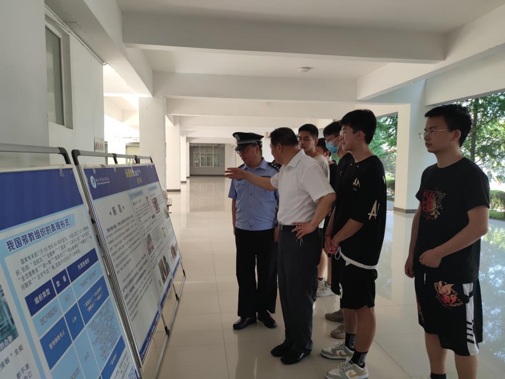 最后,大家有序观看了反邪教图片展,一幅幅触目惊心的图面使大家充分认识到了邪教反人类的本质及严重危害性,进一步坚定师生反邪教的思想和行动自觉,展出计划将持续到11月。郭鹏毅警官在交流中表示,将切实履行属地责任,今后将定期指导学校开展反邪教宣教活动,做到“校警合力、校地联动、密切合作、协同发力”。希望广大师生对身边发生的邪教违法犯罪活动敢于斗争,增强防范抵制邪教的自觉性,配合公安机关和有关部门开展打击处置,共同营造群防群治邪教的良好社会环境。