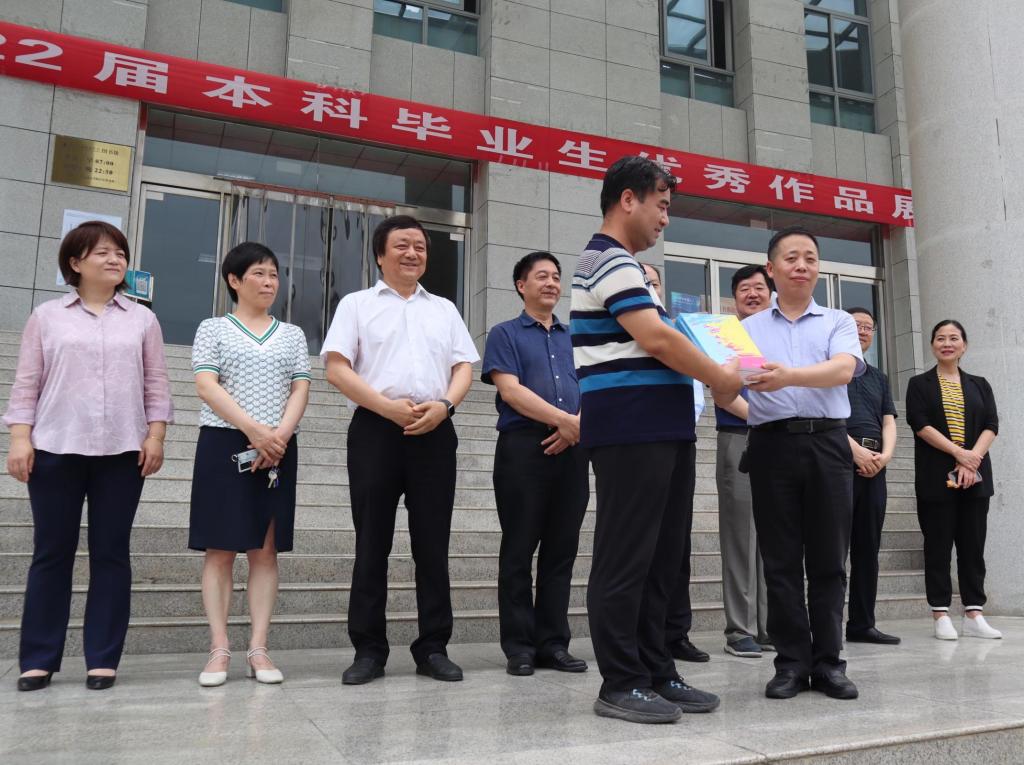 在纪念毛泽东同志《在延安文艺座谈会上的讲话》发表80周年之际,为进一步推动best365官网美育向纵深发展,营造浓厚的校园艺术氛围,提升学生审美素养,5月22日上午,由美术学院和图书馆联合举办的“美术学院2022届本科毕业生优秀作品展”在best365官网图书馆开幕。校长邵必林,校党委副书记、纪委书记、省监委驻校监察专员王凯,校党委副书记栾高明出席开幕式,党政办公室、党委组织部、党委宣传部、党委学工部、人事处、图书馆等部门主要负责人,以及美术学院师生参加开幕式。