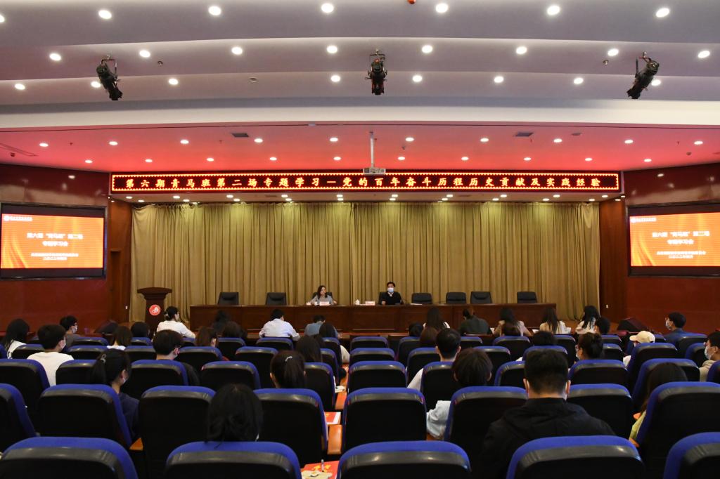 报告围绕五个主题展开,即为什么要学习党的历史;学党史学什么,怎么学;百年奋斗历程;百年历史贡献;百年实践经验。邵必林首先引用赫尔岑的名言“了解历史,才能看得远,永葆初心,才能走的远”阐释青年学生为什么要学习党的历史。在“怎么学”这个问题上,他指出必须以辩证唯物主义和历史唯物主义为指导方法,坚持实事求是、史论结合、理论联系实际。他从“开天辟地、改天换地、翻天覆地、惊天动地”四个历史阶段,结合党的历次代表大会的召开系统回顾了中国共产党的百年光辉历程与伟大贡献。他指出,学习党的历史就是要深刻认识中国共产党的性质宗旨、最高理想及最终目标;就是要准确把握党的历史发展的主题主线、主流本质,正确认识和科学评价党史上的重大事件、重要会议、重要人物;就是要从宝贵的历史经验中汲取智慧和力量。在谈及中国共产党的百年历史贡献与百年实践经验时,他从“救国”、“兴国”、“富国”、“强国”四个方面谈了理解。他从“党的领导”、“指导思想”、“根本宗旨”、“建设道路”、“发展理念”、“科学执政”、“统一战线”、“奋斗精神”、“从严治党”、“初心使命”十个方面阐释了中国共产党为什么“能”和中国特色社会主义为什么“好”。