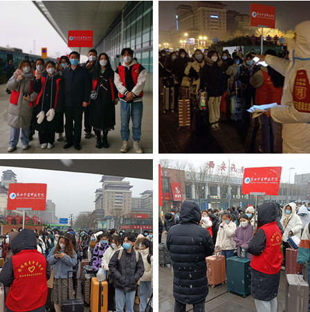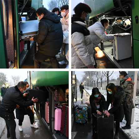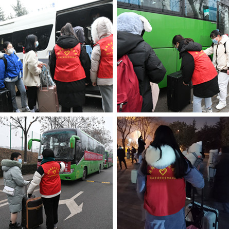 学校成立了2022年寒假工作领导小组和学生离校返家工作专班,下设综合协调、车辆保障、安全保卫、核酸检测、“两站一场”等八个工作组以及十一个学生转运组。在学校的统筹安排下,工作专班及各工作组立即投入工作,大家分工协作,密切配合,连夜完成全校学生离校返家信息台帐,积极与各市、县(区)教育局和运输部门对接沟通,协调联系运输车辆和点对点闭环接送学生的具体方案,积极协助学生购买车票和机票等。工作专班和各工作组根据西安市疫情防控风险等级随时调整、学生离校返乡方案临时多变等诸多情况,不分昼夜开展工作,发扬连续奋战的作风,连续一周以来,学校领导和工作专班、各工作组的全体成员、后勤保卫工作人员、广大教师和师生志愿者顶风冒雪、废寝忘食投入到离校返乡学生的组织、转运和保障工作中,由学校组织车辆“点对点”闭环管理送至市内“两站一场”。校园内外、火车站、高铁站、机场每个地方都留下了为返乡学生送行的身影和一幕幕感人至深的场景。学校领导和教职员工的辛勤付出,日夜奋战、暖心服务,只为全力护送同学们平安顺利返家。为了确保学生转运和离校返乡平稳有序,学校提前为学生开具了《大中专学校寒假放假学生离校返家证明》,组织学生开展核酸检测和防疫专题教育活动,为学生发放个人防护物资,提醒做好沿途个人防护,并全程动态监控每位学生的返程信息。学校的暖心服务、老师的贴心嘱托、志愿者的热情帮助,温暖了师院学子的返乡之路。对于熬了好几个通宵的老师们来说,学生顺利返家,就是对他们最大的慰藉:“当收到一个个学生打来电话、发来消息说他们顺利到家的时候,感觉我们所有的付出都是值得的。”