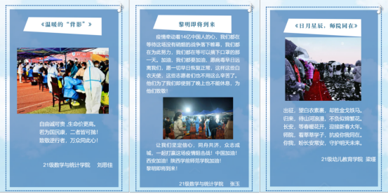 疫情管控期间,全校上下形成联动机制,扎实推进心理育人,多渠道帮助同学们以理性平和、自信阳光的心态面对疫情,为学生搭建“心理防护墙”,共同守护广大学子心灵家园。在这场没有硝烟的战争中,我们既是亲历者也是搏击者。只有汇聚更大青春合力,才能打赢疫情防控阻击战,待到阴霾尽散,共看山花烂漫!