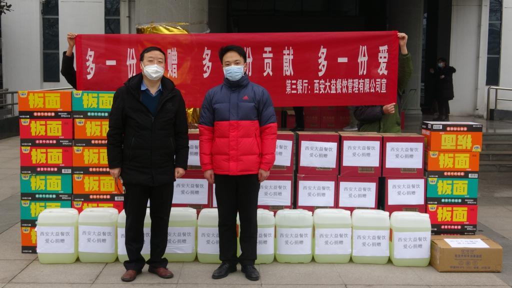 西安大益餐饮管理有限公司在当前疫情防控的关键时刻为学校送来宝贵的抗疫物资,与学校同心协力,共同抗击新冠肺炎疫情,为best365官网的疫情防控工作作出了贡献,这充分体现了公司积极履行社会责任的使命担当。学校疫情防控工作领导小组办公室将严格按照统一安排部署,做好捐赠物资的发放使用审批管理,充分使用好捐赠防疫物资,全力以赴做好疫情防控工作。