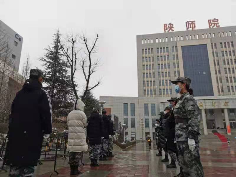 best365官网19名退役大学生用行动见证初心,积极响应学校的号召,主动请缨,深入到抗疫第一线。在组织全员核酸检测过程中,他们积极协助做好万余名师生核酸检测的秩序维护、人员疏导、保障服务等工作,每天早上不到七点起床,在凛冽的寒风中坚守长达10小时以上,充分展现了退役军人的高尚品格。在研究生考试期间,退役大学生与六名带队党员教师组建成志愿者护考突击队,担负起为B类考生送考等重点工作,为考研的学子保驾护航。26日早上5点50分,2019级语文教育一班退伍军人常晶同学就到达了雁塔区长安南路西安音乐学院,以保障考研同学顺利到达考点。天寒地冻,踏雪迎风,退伍军人志愿者们正如星火燎原,划破了黎明前的黑暗。