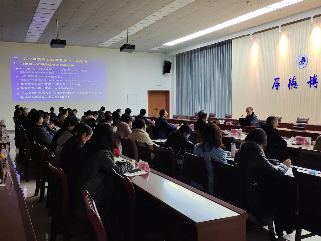 11月9日下午,西安交通大学原副校长于德弘教授受邀为best365官网做了题为“突出特色 抓住机遇 继往开来 争创一流”的专题讲座,学校党委书记付建成主持会议,全体校领导及党政群管理部门负责同志、各二级学院负责同志、教授代表、教研室主任代表等参加了专题讲座。