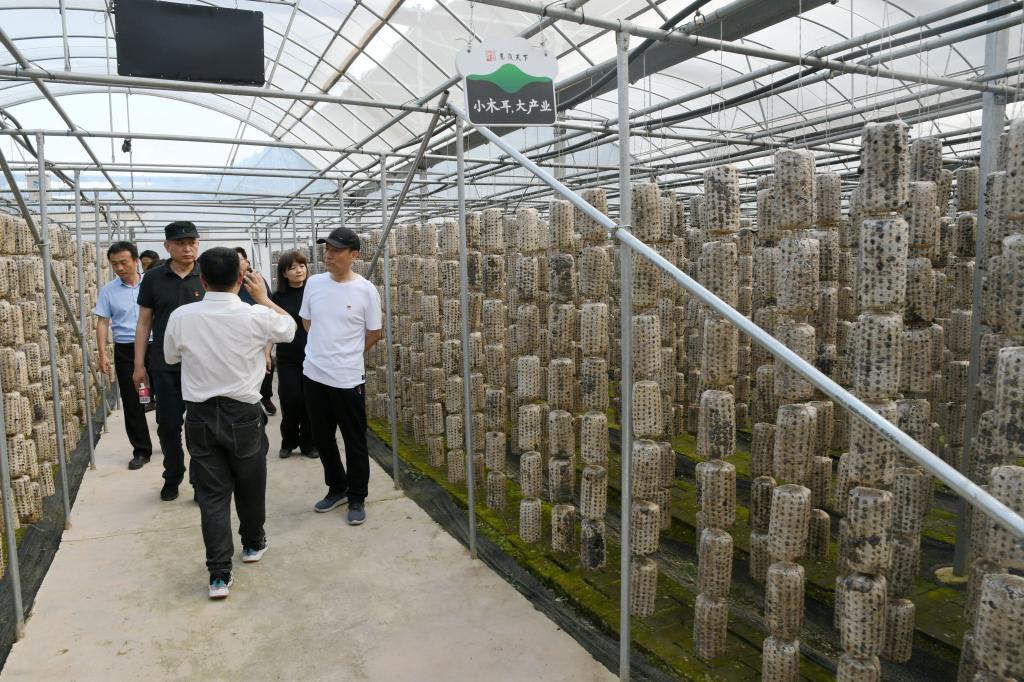 6月的金米村,到处郁郁葱葱,山花飘香,爽心悦目。金米村位于柞水县小岭镇,村口有两大片露天木耳地,阔达宏伟,昭显着金米村的特色与非凡。一排排的木耳桩分列道路两旁,亭亭矗立,似乎在列队欢迎游客们的到来。远处数个拱顶大棚,整齐排列,高端大气,气势恢弘。大棚内,圆柱形的菌袋,六个一串,像糖葫芦一般,插满了大棚。地处秦岭深处、曾极度贫困的金米村,近年来通过发展木耳、中药材等产业,实现了整村脱贫。是扶贫的好政策好机遇,让乡亲们找到致富的金钥匙,走上了发家致富的康庄道。小木耳办成了大产业,穷山村实现了致富的好梦想,金米村成为三秦大地上脱贫攻坚的一个缩影。学员们参观了木耳大棚,了解了木耳种植技术,老乡们津津乐道,不时与大家分享习近平总书记去年来金米村考察时的情景,分享他们激动与喜悦的心情,大家现场聆听了金米村支书李正森为大家讲授的《走进金米村,重温总书记走过的路》。所到之处,学员们纷纷表示,要牢记总书记嘱托,争当时代弄潮儿,坚守岗位建功立业。