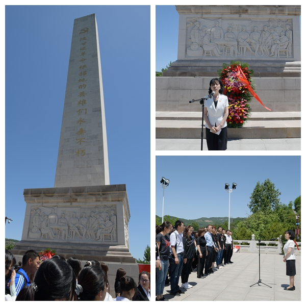 6月5日,学员们走进陕甘边革命根据地照金纪念馆参观学习,重温历史,走进那段光辉岁月。每一个展柜前、每一件物品的背后,都讲述着一个个震撼人心的革命故事,一张张承载着历史的照片,震撼着学员们的心灵,大家仔细聆听,认真观看,不时驻足,若有所思,感慨不已。陕甘边革命根据地英雄纪念碑位于纪念馆正后方,由碑体和基座两部分组成。碑体镌刻着“陕甘边革命根据地的英雄们永垂不朽”大字,基座四周是四幅浮雕,再现了陕甘边革命根据地建党、建政、建军和建立军民鱼水情的四个历史场景。学员们瞻仰了英雄纪念碑,向革命烈士敬献花篮,重温入党誓词,缅怀革命先烈。天下将兴,其积必有源。照金这块红色的土地,所经历和收获的,既有奋斗的艰辛,也有成功的喜悦。通过回顾陕甘边革命根据地照金苏区创建的艰难历程,感受革命先辈浴血奋战、百折不挠、用生命和鲜血铸就的照金精神,使学员在今后的工作和学习中,能以照金精神为指引,用实际行动践行照金精神,使依靠群众、发动群众、服务群众的思想深植广大学员心中。