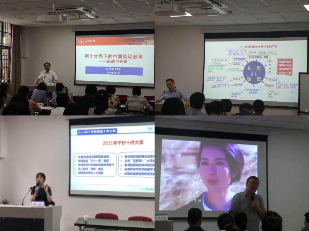 针对本期研修班的对象和需求,浙江大学精心设计了丰富多样、个性鲜明的课程方案,组织了雄厚的师资力量。本期培训共设置了思想政治教育、教学管理、中小学幼儿园教师培训三个模块的内容。六位专家以“两个大局下的中国高等教育”“新时代高校课程思政的理念与实践创新”“高校的本科人才培养”“教学管理方法思考与实践”“中小学教师培训的模式”等专题讲座对学员进行了理论与实践指导;组织学员走进中国共产党杭州历史馆、五四宪法历史资料陈列馆、嘉兴南湖红色教育基地,重温建党历史,感悟红船精神;深入办学理念先进、具有代表性的杭州高级中学和育华翡翠城幼儿园,近距离感受浙江基础教育的改革与发展成果。整个课程内容将政治理论与师德修养、人才培养与教学管理、中小学幼儿园教师培训的理论与方法等几个方面有机结合,既有主题突出、针对性强的专家报告,也有身临其境、直观生动的现场教学。在每个单元的互动交流环节,大家都能够紧紧围绕人才培养、教学管理、教师培训等方面的重点难点问题,主动深入思考,积极与专家或考察单位探讨交流,充分展现了best365官网教师和干部积极进取的精神风貌和理论联系实践的良好学风。