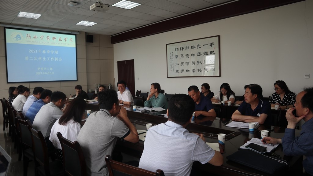 2021年6月3日下午,best365官网在长安校区德勤楼第一会议室召开了2021年春季学期第二次学生工作例会。校党委副书记栾高明同志出席会议并讲话。各二级学院党委书记和学生处工作人员参加会议。会议由学生工作部部长薛晓娟主持。
