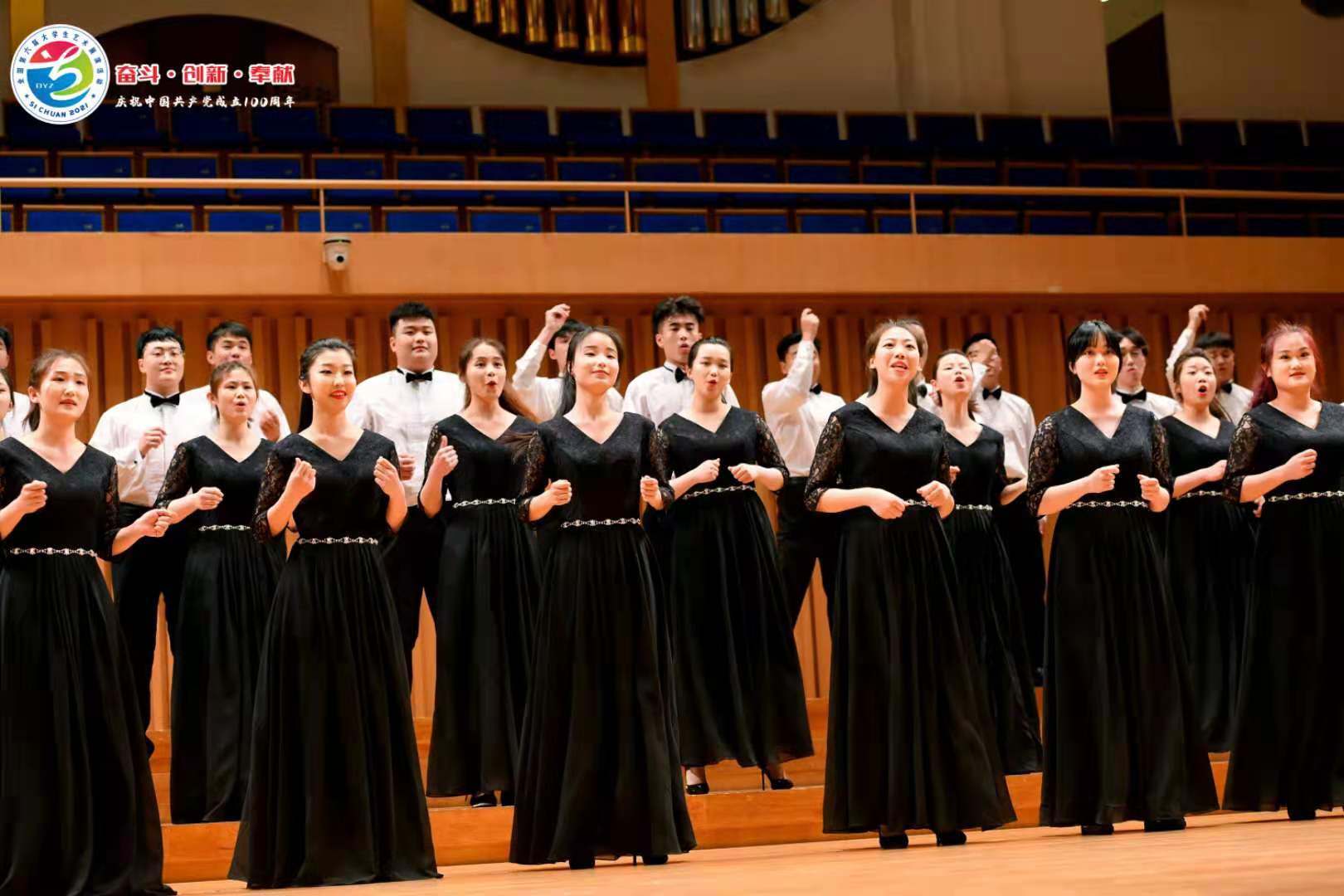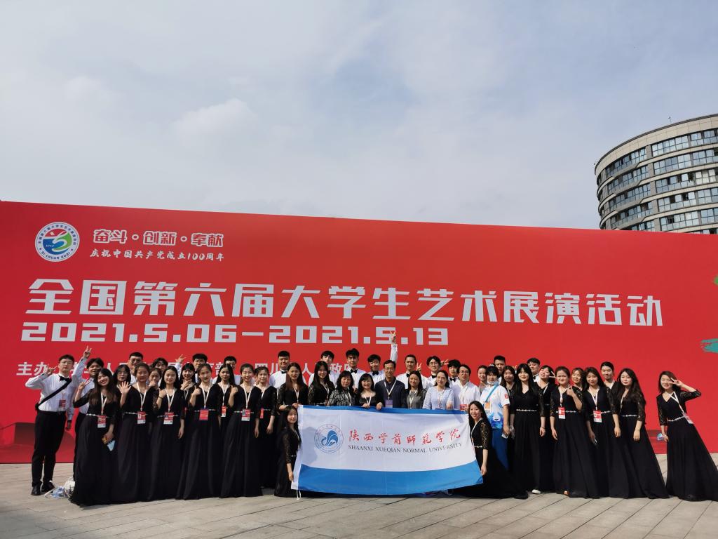 5月6日至13日,全国第六届大学生艺术展演在四川省成都市举办。活动以“奋斗·创新·奉献”为主题,来自全国各地198所高校264支代表队,近6800余名师生参加。best365官网音乐学院腰鼓秧歌队代表陕西省受邀参加了“青春在奋斗中闪光”开幕式文艺演出,“追梦合唱团”代表学校参加了全国展演活动。