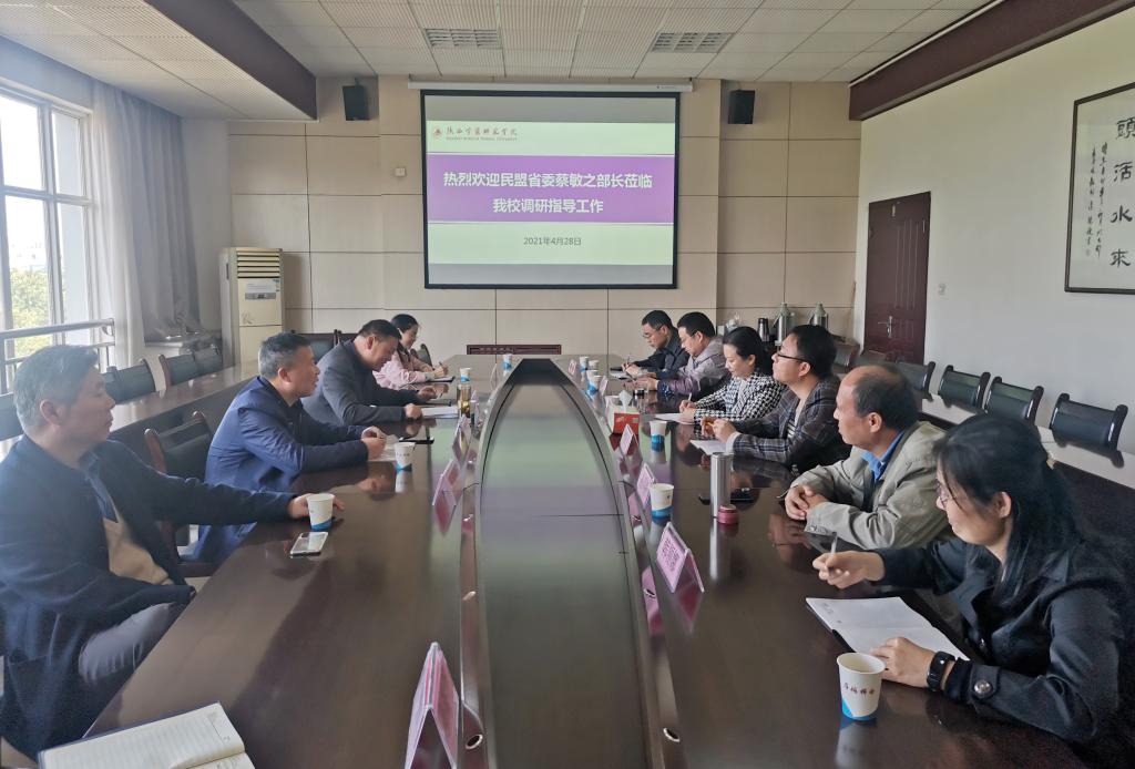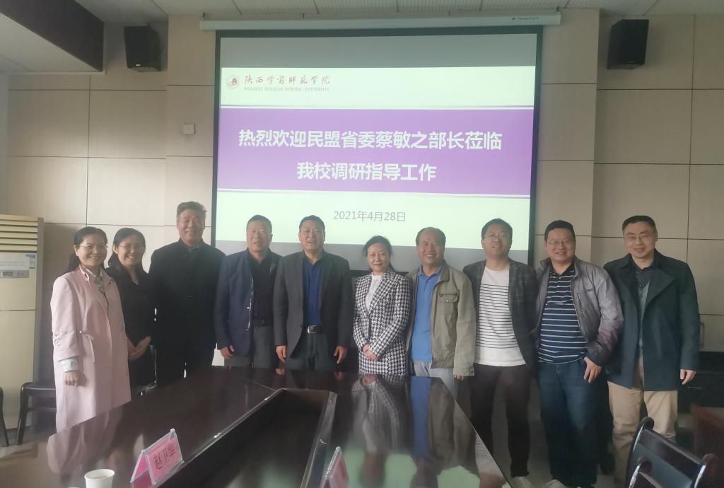 4月28日下午,民盟陕西省委委员、组织部部长蔡敏之一行两人来best365官网调研交流,与best365官网党委统战部常务副部长肖新,民盟best365足球官网支部主委李应乐教授以及民盟支部的全体盟员等进行了交流座谈。