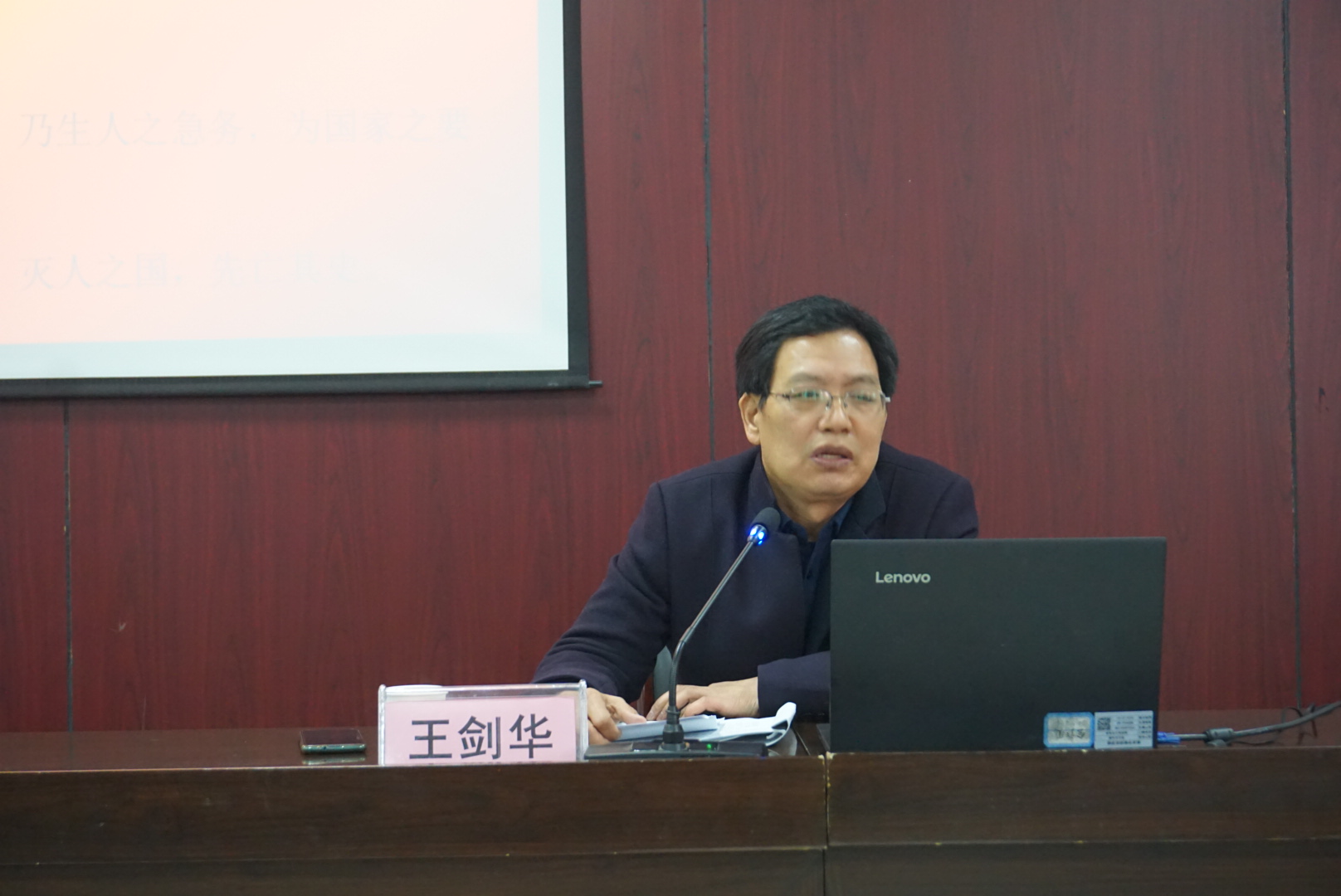 4月2日下午,机关党史学习教育专题辅导报告会在长安校区德勤楼第五会议室举行。best365官网马克思主义学院王剑华教授受邀作辅导报告,机关全体党员干部到会聆听。报告会由机关党委书记郭升团主持。