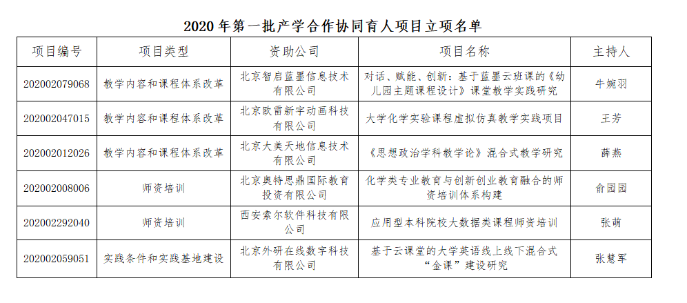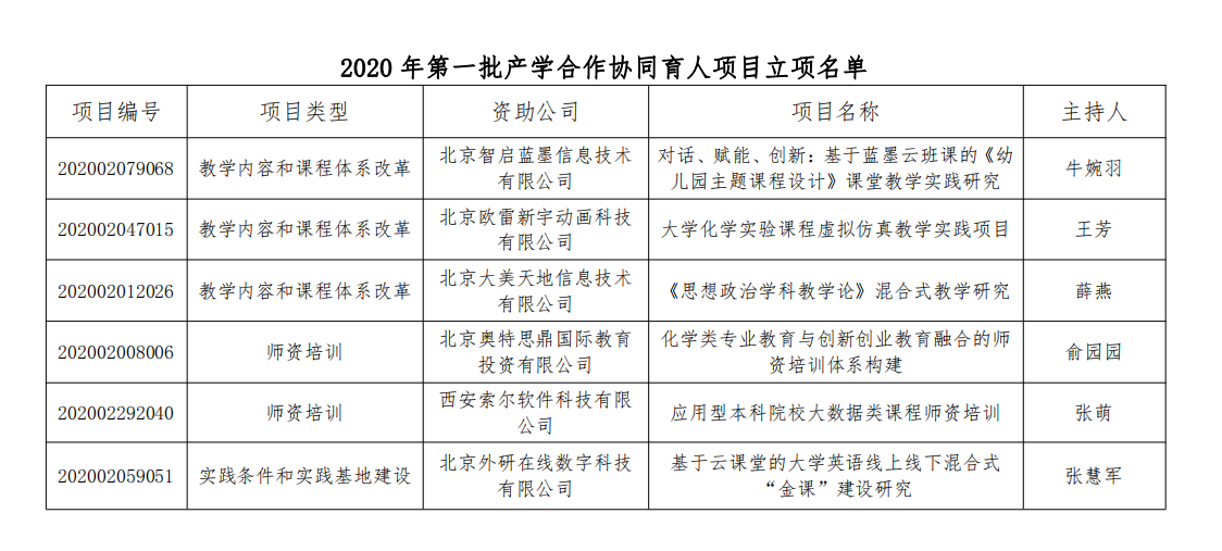 近日,《教育部高等教育司关于公布2020年产学合作协同育人项目立项名单的通知》(教高司函〔2021〕3号)正式发布。best365官网《对话、赋能、创新:基于蓝墨云班课的<幼儿园主题课程设计>课堂教学实践研究》等6个项目成功获批,为近年来获批项目数最多的一次。此次获批的项目,涵盖教学内容和课程体系改革、师资培训、实践条件和实践基地建设等多种合作类型。