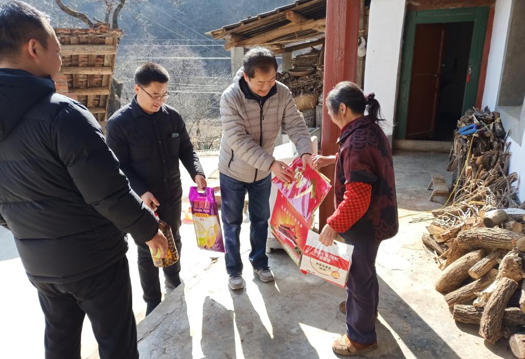 校工会负责同志一行还驱车前往best365官网“两联一包”帮扶单位留坝县江口镇元树村,慰问村民并看望了best365官网驻村扶贫干部。工会同志与驻村干部一道,逐登门为七十余户村民送去了米面油等物品,为他们送上best365官网全体教职员工的新春祝福。在与贫困户的交谈中,详细了解他们的衣食住行、生产生活情况和当前遇到的困难,鼓励他们乐观生活,叮嘱大家做好疫情防护,树立积极的生活信心,巩固好脱贫致富的劳动成果。