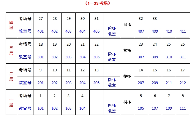 智慧楼考场分布示意图