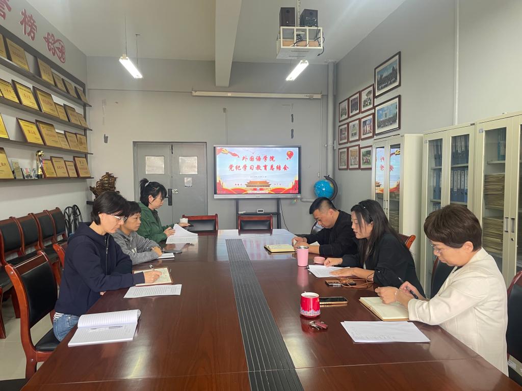 首先大家集体学习了习近平总书记关于党纪学习教育的重要指示精神、中央党的建设工作领导小组会议精神、习近平总书记全国教育大会讲话全文内容,以及《大力弘扬教育家精神,为党育人为国育才》文稿内容。会议总结了外国语学院党纪学习教育开展情况和完成的阶段性工作。传达了9日下午副校长李明军就学院大学英语教学改革、学科专业建设、国际化育人等方面工作进行调研时提出的要求,强调要重点做好将高等教育政策学习和掌握纳入理论学习中心组学习内容;抓好专业建设,力求取得实效;注重教师教育教学能力的培养和提升;做好学生发展和服务保障等四方面工作。最后会议安排部署了学院今后推进党纪学习教育常态化长效化有关工作。会议指出,党纪学习教育是加强党的纪律建设、推动全面从严治党向纵深发展的重要举措。作为党员干部,应当率先垂范,坚持高起点高标准高质量抓好党纪学习教育,紧密结合工作实际,强化理论学习,开展廉洁教育,做到常态化、长效化,切实推进党纪学习教育走深走实。在今后的工作中,一是要深耕理论学习,孕育清廉本心。二是开展防腐教育,筑牢红色防线。三是要巩固教育成果,确保知行合一。外国语学院党委将一如既往把“严”和“实”的作风贯穿始终,巩固拓展党纪学习教育成果,为各项工作高质量发展注入强大动力。