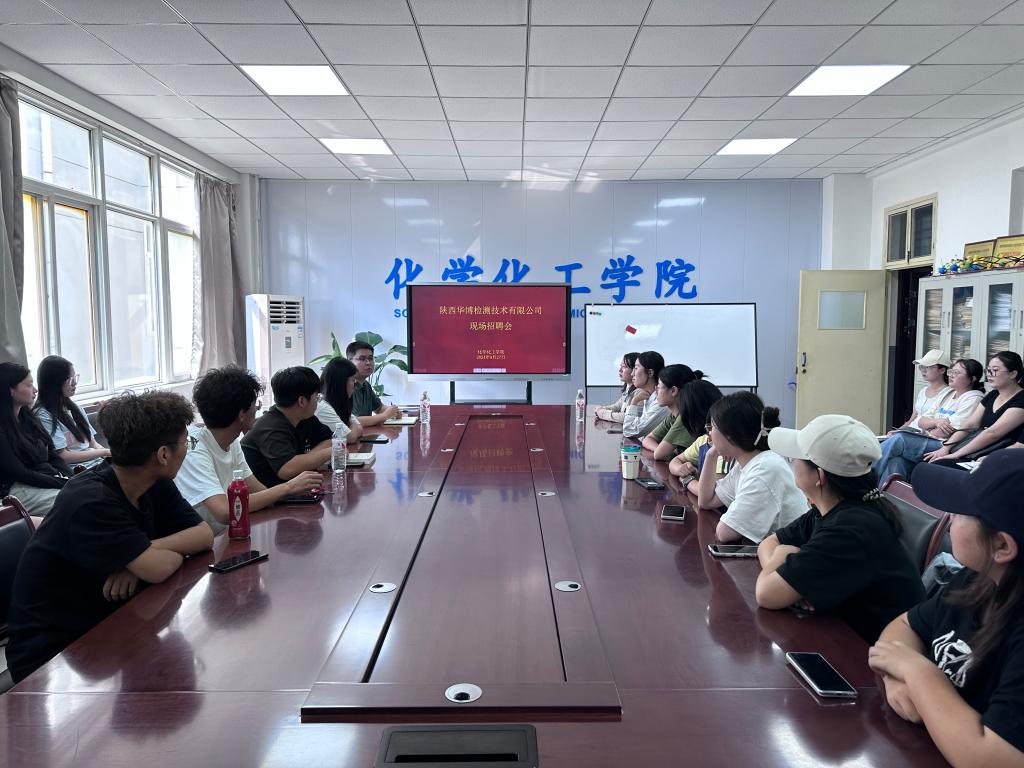 为了搭建毕业生与用人单位之间的桥梁,推动我院2025届毕业生高质量充分就业,化学化工学院于9月27日上午在积学楼B203会议室召开专场招聘会。邀请陕西新时代生物转化检测有限公司以及陕西华博检测技术有限公司来我院参加专场招聘会。招聘会由我院党委副书记彭晓江主持,毕业班辅导员及有意向的50余名学生参加了此次招聘会。